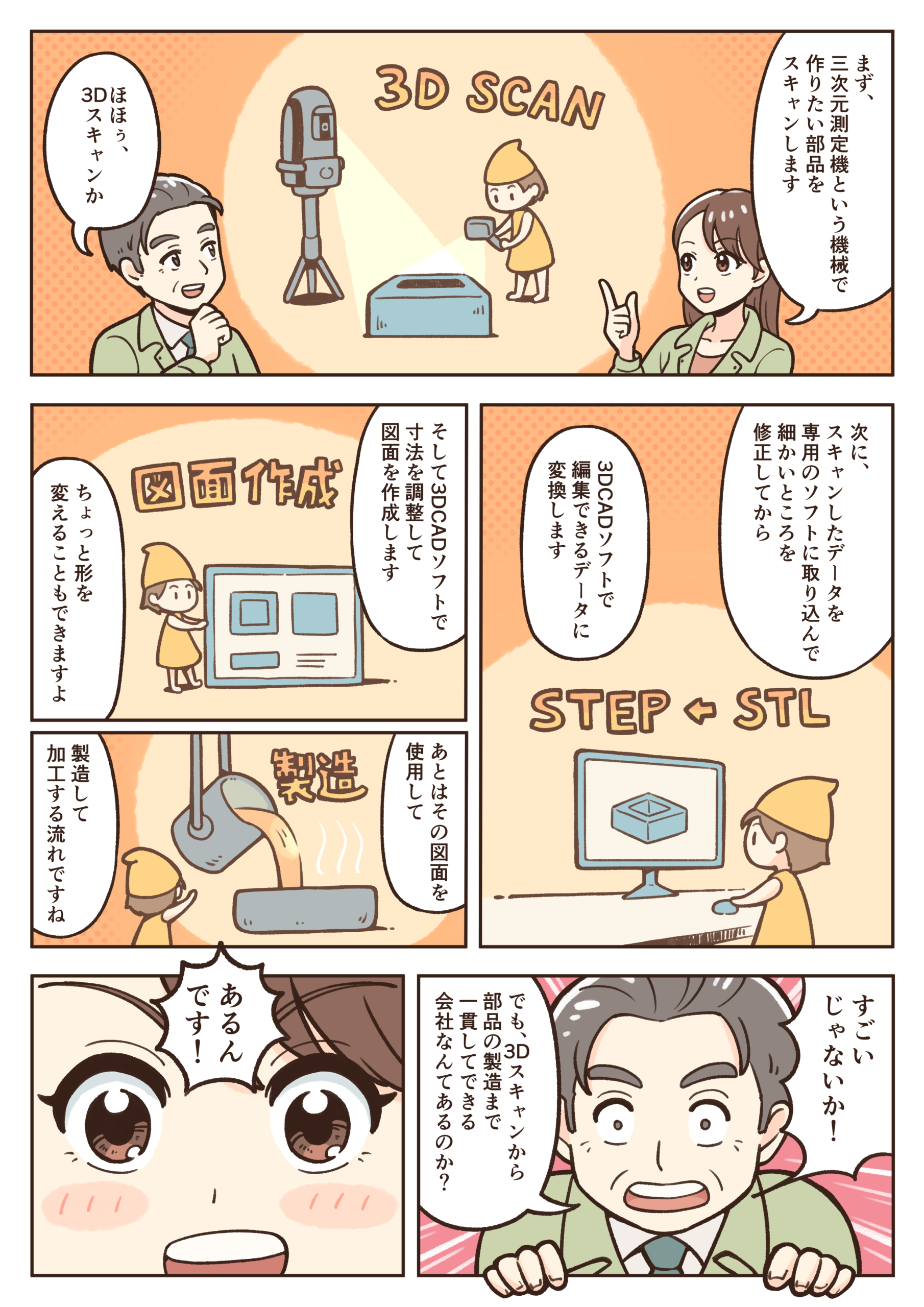 佐々木鋳工所は図面のない部品なども、3Dスキャンをしてデータ化し、3DCADソフトで寸法調整および図面を製作します。